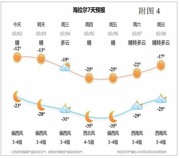 2月2日,呼伦贝尔市气象局发布2026年第1期重要天气预报,受强冷空气强势影响,2月4—5日全市将遭遇寒潮、部分地区大风及分散性小雪天气,气温大幅“跳水”,中北部将出现极寒时段,需重点做好防范应对。